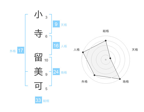小寺 留美可さんを姓名の画数から五運を鑑定
