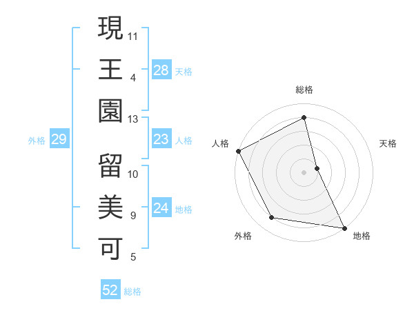 現王園 留美可さんの総格は52画の4点!