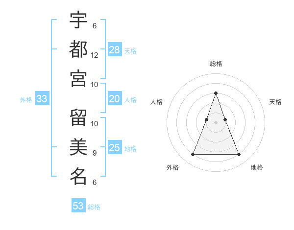 宇都宮 留美名さんを姓名の画数から五運を鑑定