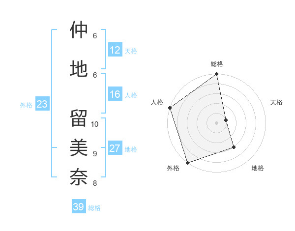 仲地 留美奈さんの天格は12画の1点!
