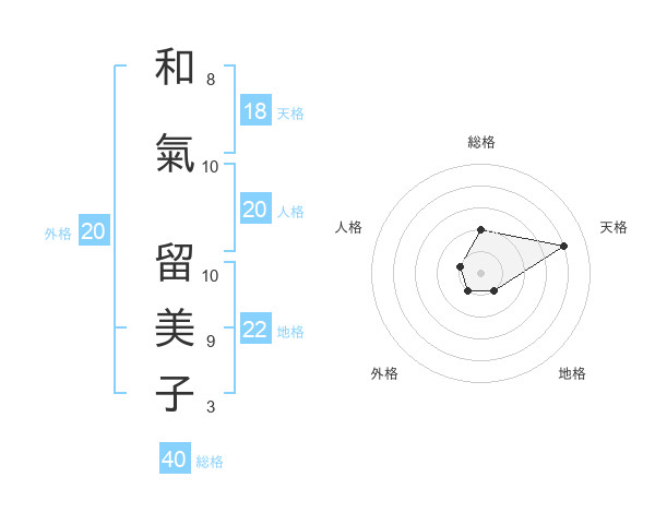 和氣 留美子さんを姓名の画数から五運を鑑定