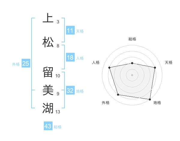 上松 留美湖さんを姓名の画数から五運を鑑定