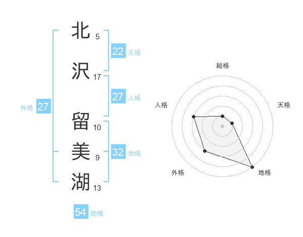 北沢 留美湖さんの地格は32画の5点!