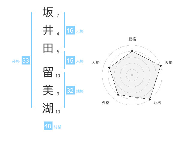坂井田 留美湖さんを姓名の画数から五運を鑑定