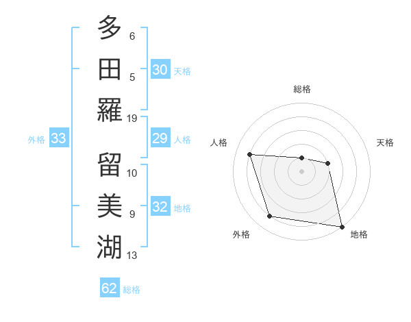 多田羅 留美湖さんを姓名の画数から五運を鑑定