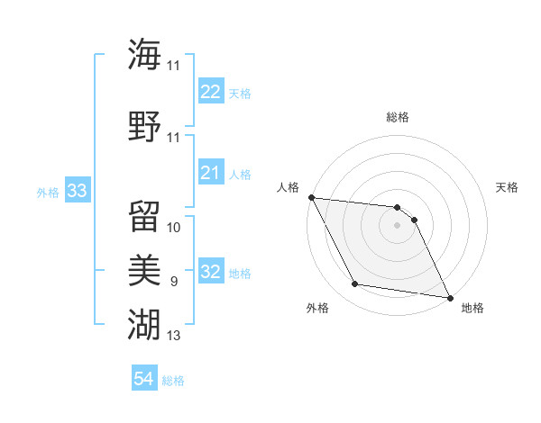 海野 留美湖さんを姓名の画数から五運を鑑定