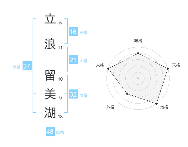 立浪 留美湖さんを姓名の画数から五運を鑑定