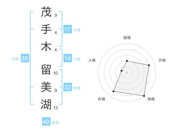 茂手木 留美湖さんを姓名の画数から五運を鑑定