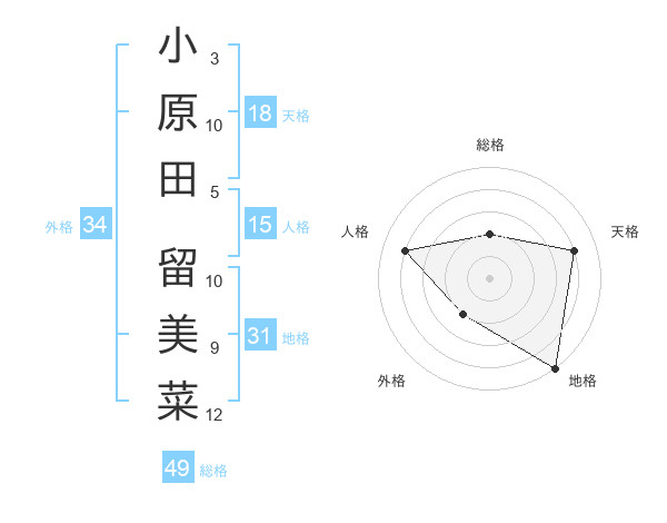 小原田 留美菜さんを姓名の画数から五運を鑑定