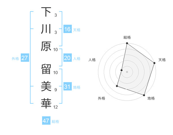 下川原 留美華さんを姓名の画数から五運を鑑定