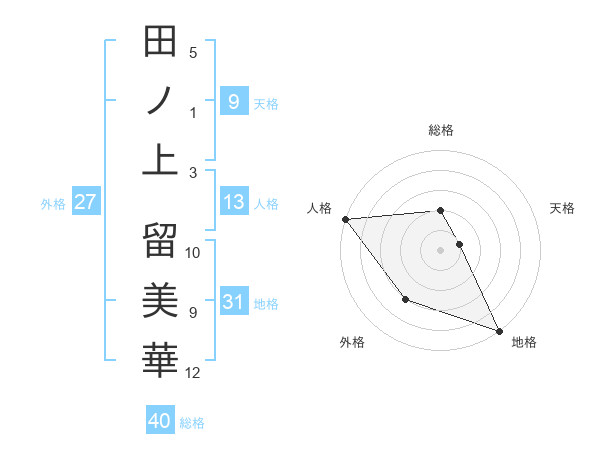 田ノ上 留美華さんを姓名の画数から五運を鑑定
