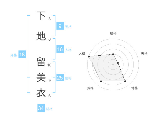 下地 留美衣さんの外格は18画の4点!