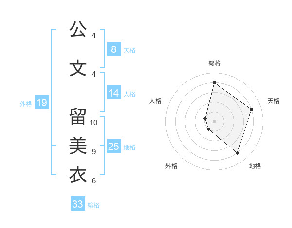 公文 留美衣さんの天格は8画の4点!