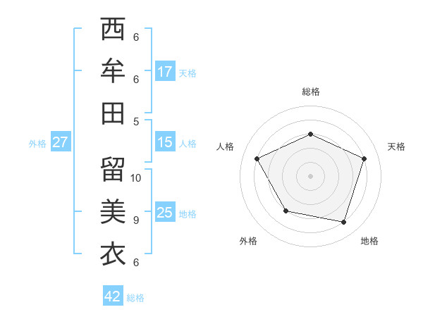 西牟田 留美衣さんを姓名の画数から五運を鑑定