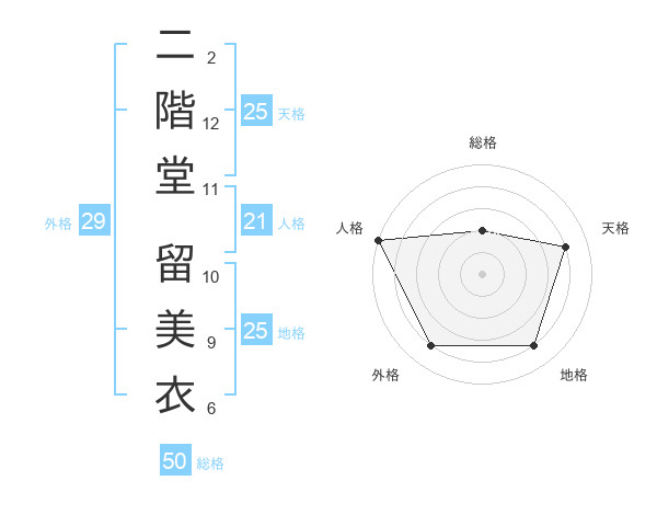 二階堂 留美衣さんの地格は25画の4点!