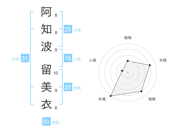 阿知波 留美衣さんを姓名の画数から五運を鑑定