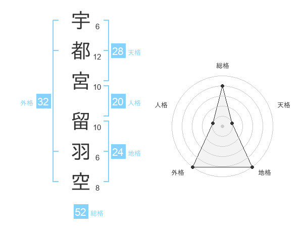 宇都宮 留羽空さんを姓名の画数から五運を鑑定