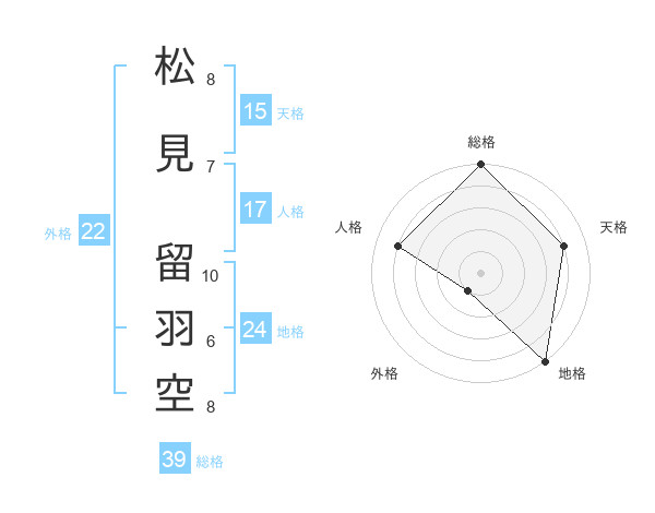 松見 留羽空さんの総格は39画の5点!
