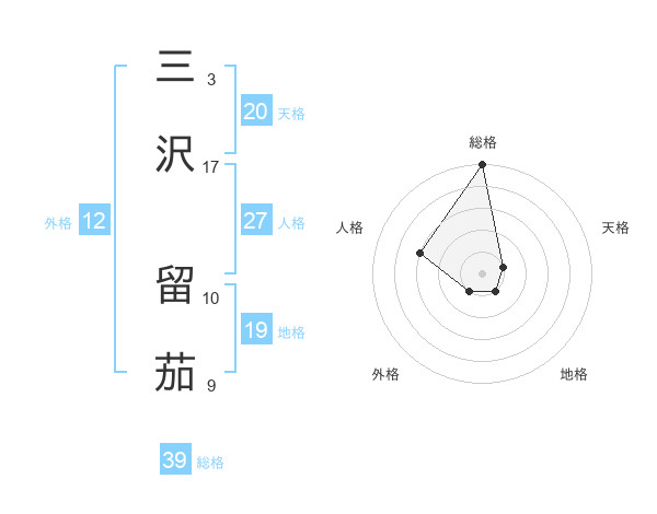 三沢 留茄さんを姓名の画数から五運を鑑定