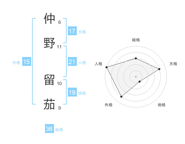 仲野 留茄さんを姓名の画数から五運を鑑定