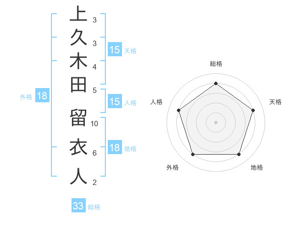 上久木田 留衣人さんを姓名の画数から五運を鑑定