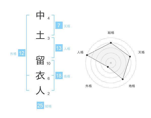 中土 留衣人さんを姓名の画数から五運を鑑定