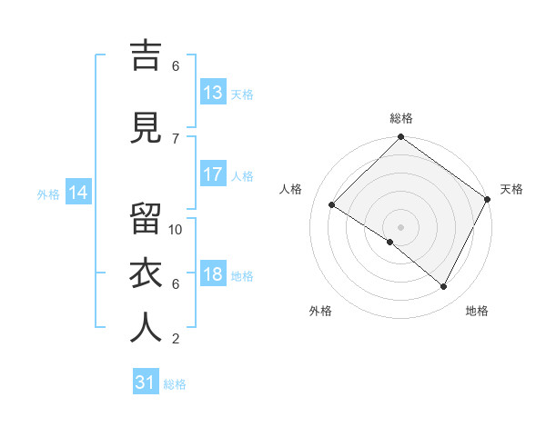 吉見 留衣人さんを姓名の画数から五運を鑑定