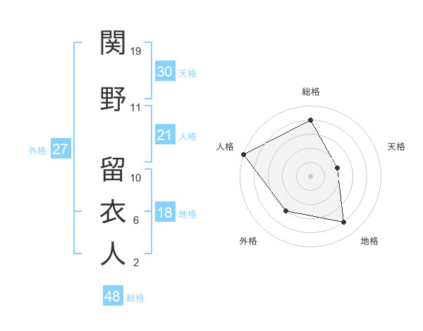 関野 留衣人さんを姓名の画数から五運を鑑定