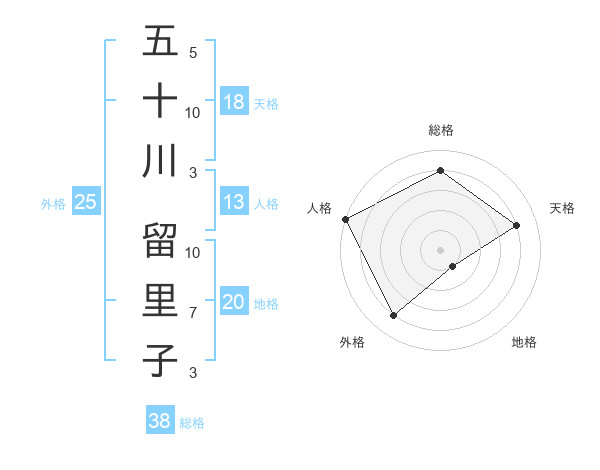 五十川 留里子さんの総格は38画の4点!