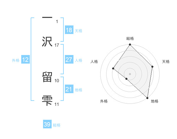 一沢 留雫さんの天格は18画の4点!