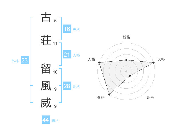古荘 留風威さんの総格は44画の2点