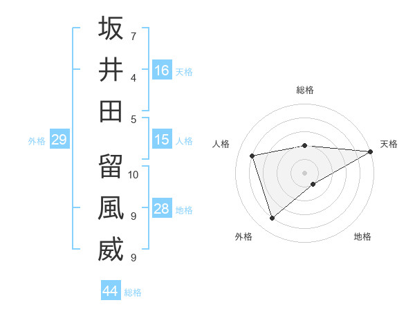 坂井田 留風威さんを姓名の画数から五運を鑑定