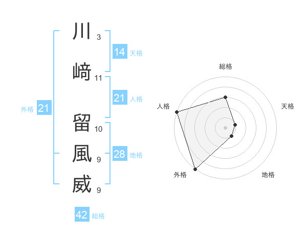 川﨑 留風威さんを姓名の画数から五運を鑑定