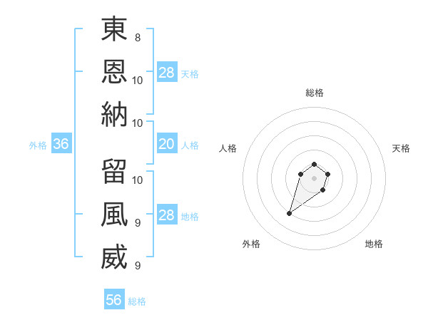 東恩納 留風威さんの総格は56画の1点!