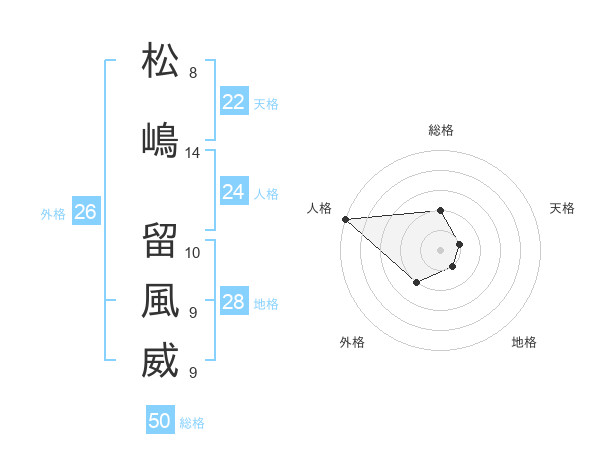 松嶋 留風威さんを姓名の画数から五運を鑑定