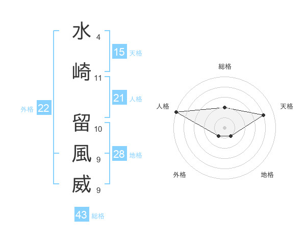 水崎 留風威さんを姓名の画数から五運を鑑定