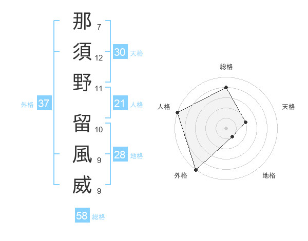 那須野 留風威さんの外格は37画の5点!