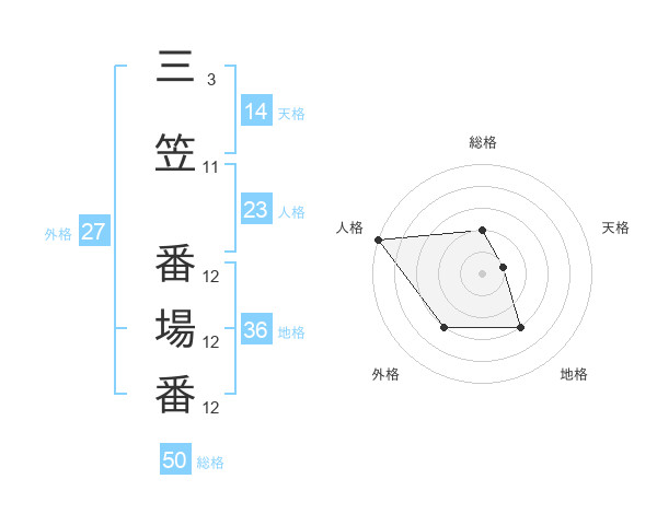 三笠 番場番さんを姓名の画数から五運を鑑定