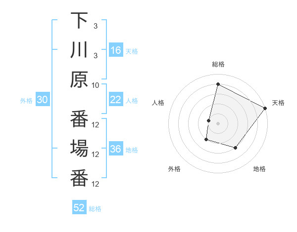 下川原 番場番さんを姓名の画数から五運を鑑定