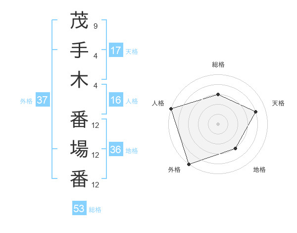 茂手木 番場番さんの外格は37画の5点!