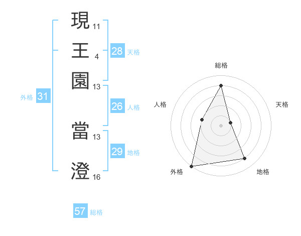 現王園 當澄さんを姓名の画数から五運を鑑定