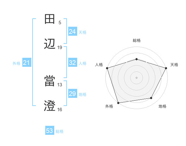 田辺 當澄さんの総格は53画の3点!