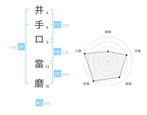 井手口 當磨さんを姓名の画数から五運を鑑定