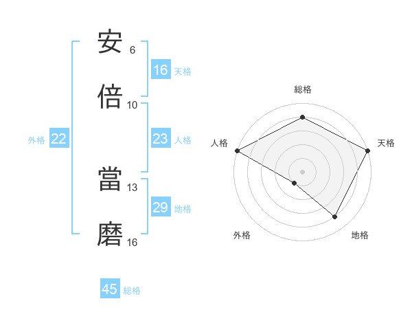安倍 當磨さんを姓名の画数から五運を鑑定