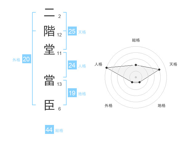 二階堂 當臣さんを姓名の画数から五運を鑑定