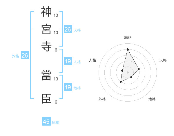 神宮寺 當臣さんを姓名の画数から五運を鑑定