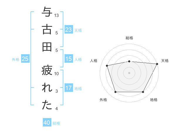 与古田 疲れたさんを姓名の画数から五運を鑑定