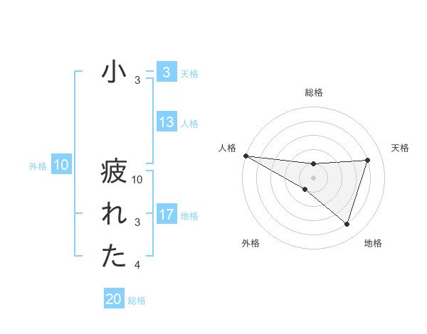 小 疲れたさんの総格は20画の1点!