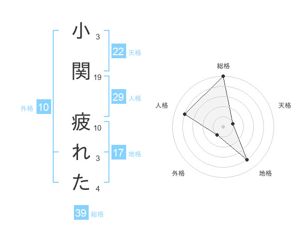 小関 疲れたさんの天格は22画の1点!