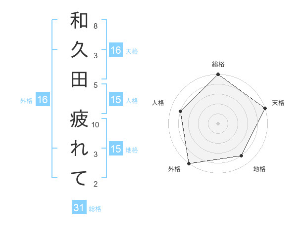 和久田 疲れてさんの総格は31画の5点!